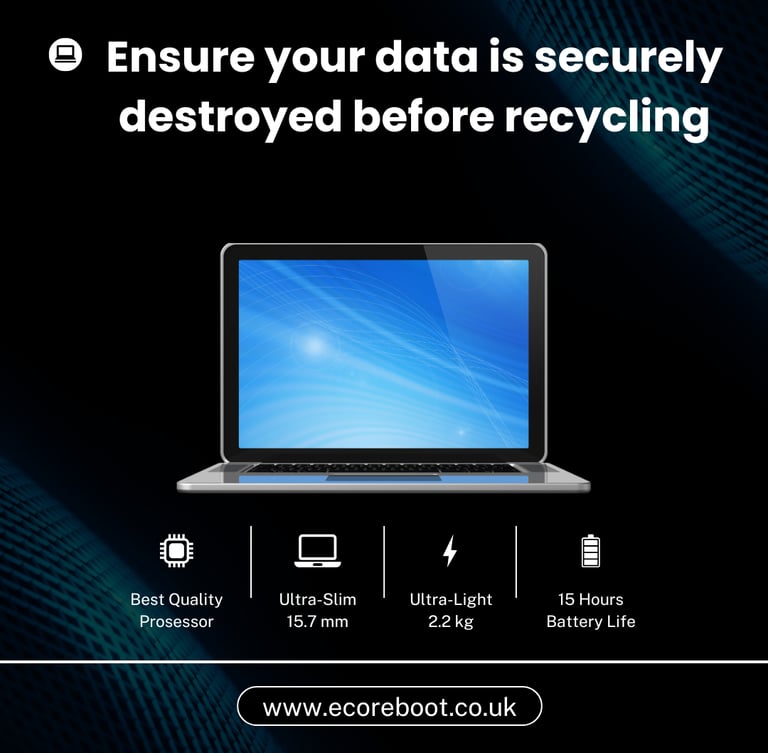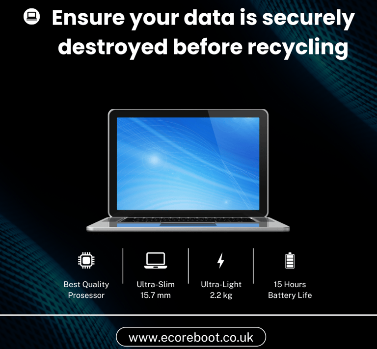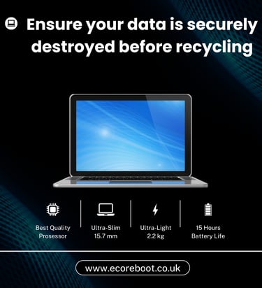 EcoReboot IT Recycling , we specialize in responsible IT recycling, offering eco-friendly and secure solutions for laptops, computers, and electronic devices. Serving businesses, schools, and individuals across all of London, we ensure data protection, secure destruction, and environmentally-friendly disposal. Recycling made easy—secure, sustainable, and reliable.