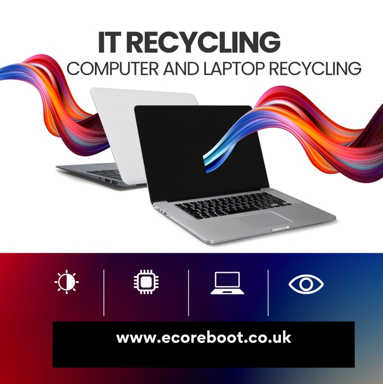 EcoReboot IT Recycling , we specialize in responsible IT recycling, offering eco-friendly and secure solutions for laptops, computers, and electronic devices. Serving businesses, schools, and individuals across all of London, we ensure data protection, secure destruction, and environmentally-friendly disposal. Recycling made easy—secure, sustainable, and reliable.